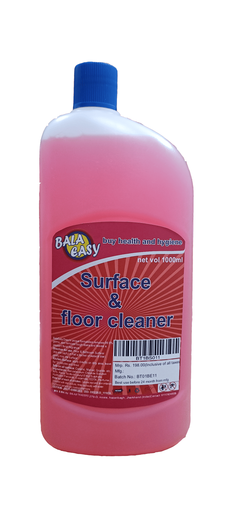 Bala Easy Pink Floor Cleaner is a disinfectant made with high-quality cleaning solution is formulated with a blend of ingredients, including lemongrass oil and other herb extracts. These potent ingredients work effectively to eliminate dirt, grime, and stains, leaving the floor looking clean and shiny.